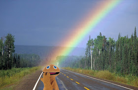 Matthew Adams - 90 year old with a mobility scooter, on a highway - under a rainbow. Ha!